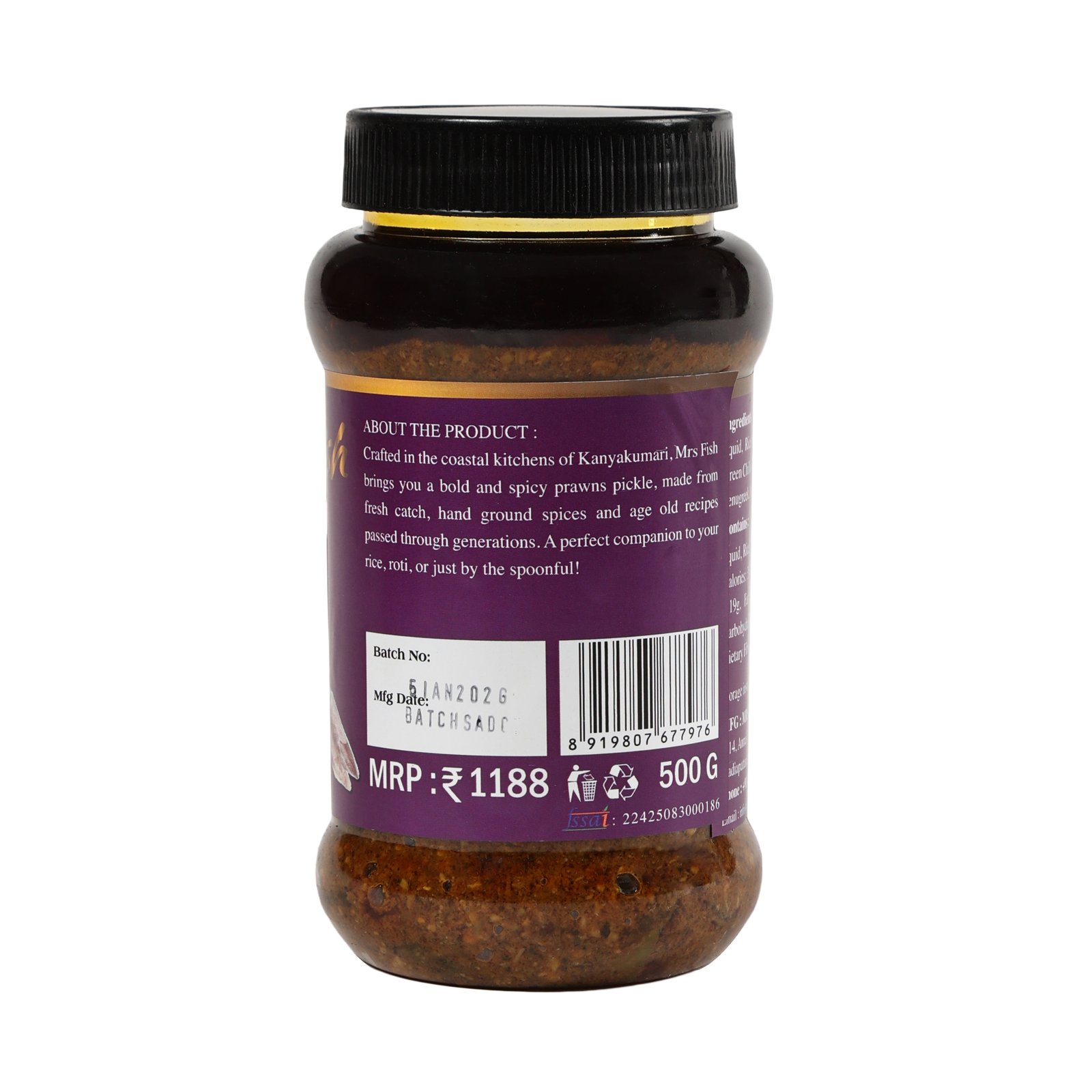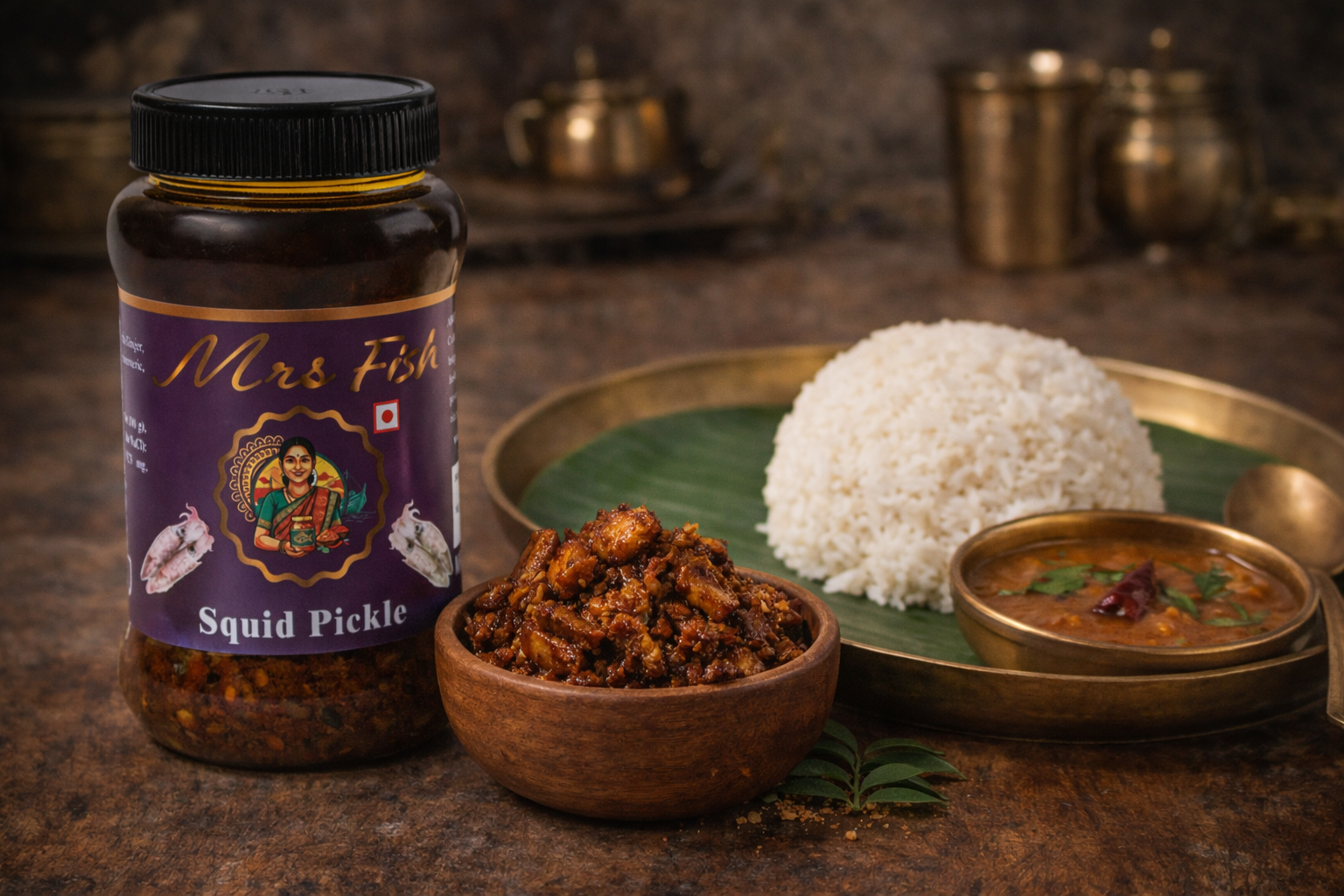 Enjoy the authentic coastal taste of Mrs.Fish Squid Pickle, made with fresh squid and traditional spices from Kanniyakumari. A perfect spicy seafood side dish that adds rich flavor to rice, dosa, and chapati.